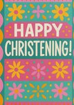 A vibrant retro-style design featuring large yellow, pink, and orange flowers with geometric pattern borders.