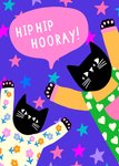 Colourful Illustrated Black Cats Hip Hip Hooray Congratulations Card