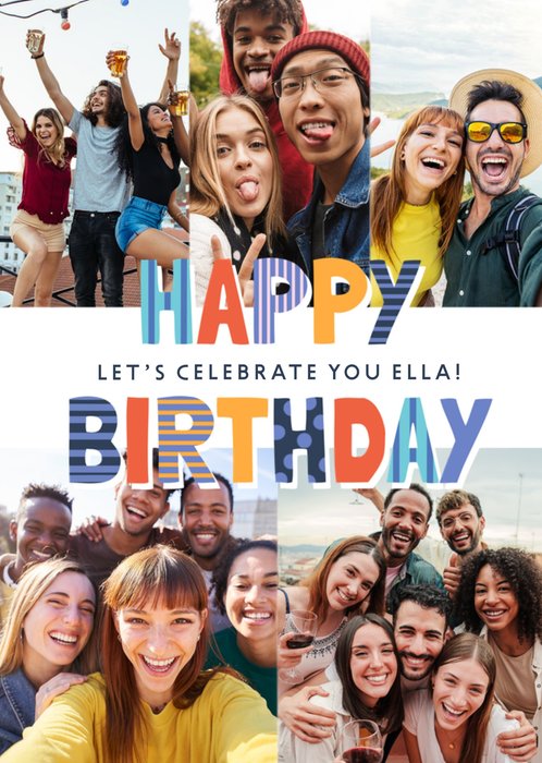 Featuring a collage of five photo frames with colourful lettering on a white background.