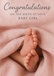 Close-up photograph of baby feet resting on soft pink fabric with elegant script and serif text above.