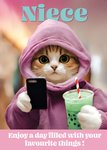 Cute Cat Illustrated Happy Birthday Niece Card