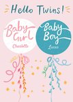 "Hello Twins! Baby Girl Charlotte Baby Boy Lucas" with editable name text.