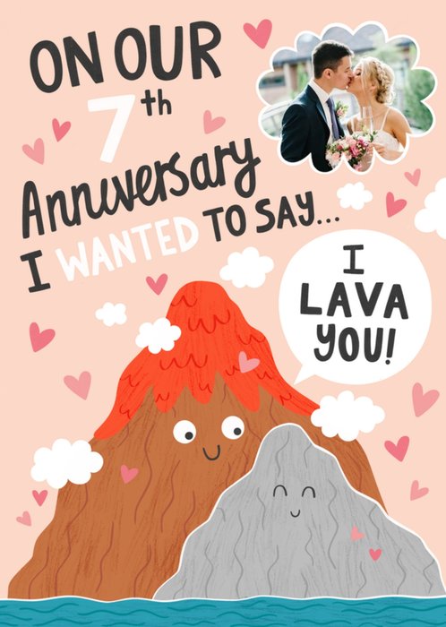 Cute Volcano 7th Year Anniversary Photo Upload Card
