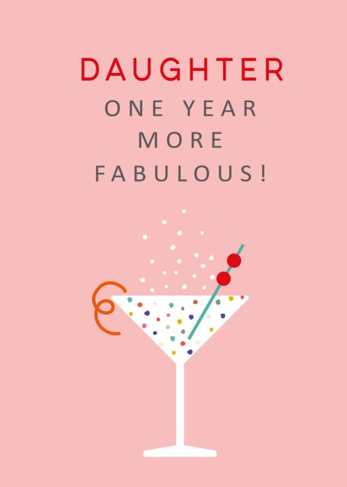 Daughter One More Year Fabulous Illustrated Martini Birthday Card