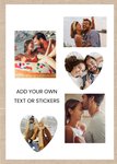 A modern design Featuring five photo frames in mixed rectangle and heart shapes with a beige border, on a white background. The design allows for fully editable text boxes, letting you create a truly personalised card.