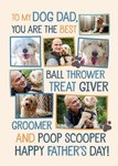 Text reads: "To my dog dad, you are the best ball thrower treat giver groomer and poop scooper happy Father's Day!".