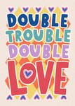 A modern design featuring bold pastel hand drawn typography with small heart motifs on a diamond pattern panel, with a cream background.