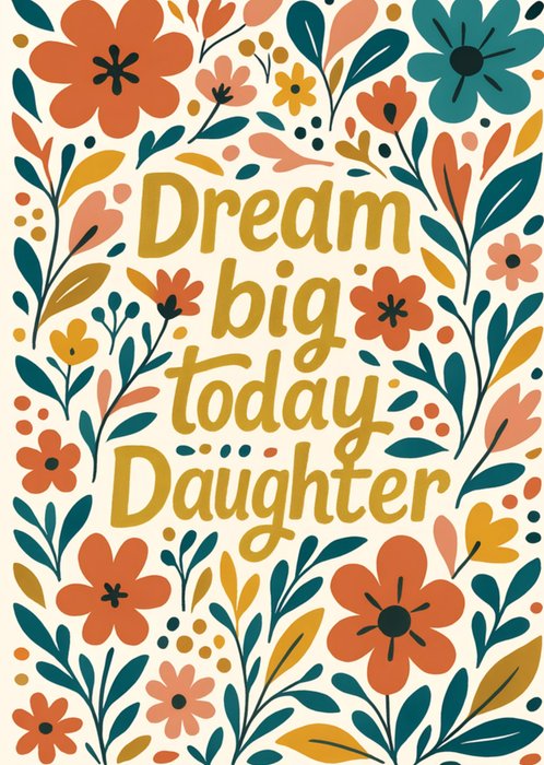 A colourful design featuring a hand-lettered motivational message surrounded by colourful folk-art flowers and leaves on a cream background.