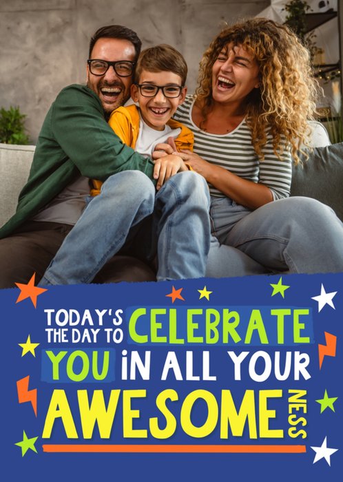 Dream Big Today’s The Day To Celebrate You In All Your Awesomeness Typographic Photo Upload Card