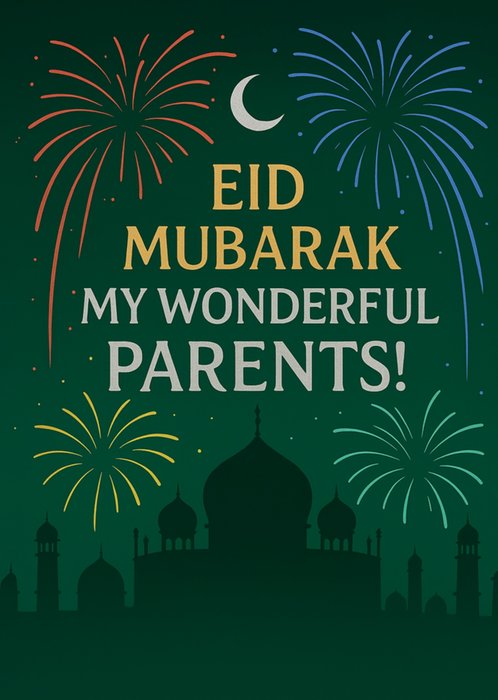 Eid Mubarak My Wonderful Parents Mosque And Fireworks Card