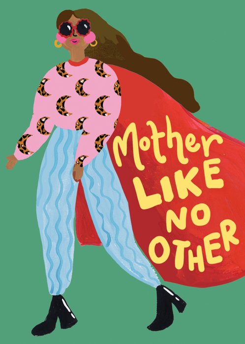 This bold and stylish Eleanor Bowmer Mother’s Day card features a hand-painted illustration of a fashionable mother wearing a flowing cape, symbolising strength and uniqueness.
