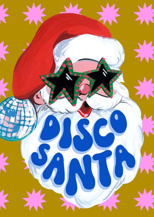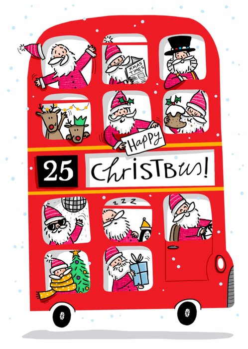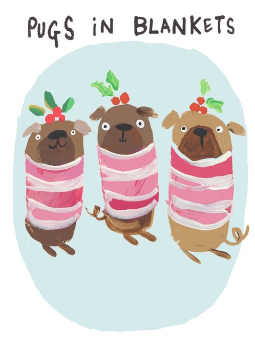 This ‘Eleanor Bowmer’ Christmas greeting card design features a variety of charming, whimsical dogs wearing festive accessories such as Santa hats, bows, and jumpers, illustrated in bold and vibrant colours, with the phrase “’Tis the Season” written in golden text on a cream background.