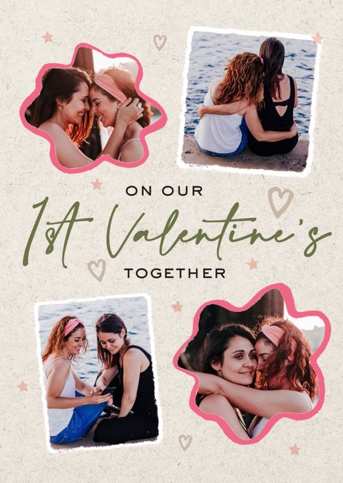 Card features 4 photo uploads in different shaped frames, surrounded by hearts and stars.