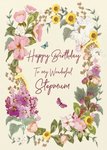 Floral Illustrated Typographic Personalised Step Mum Birthday Card