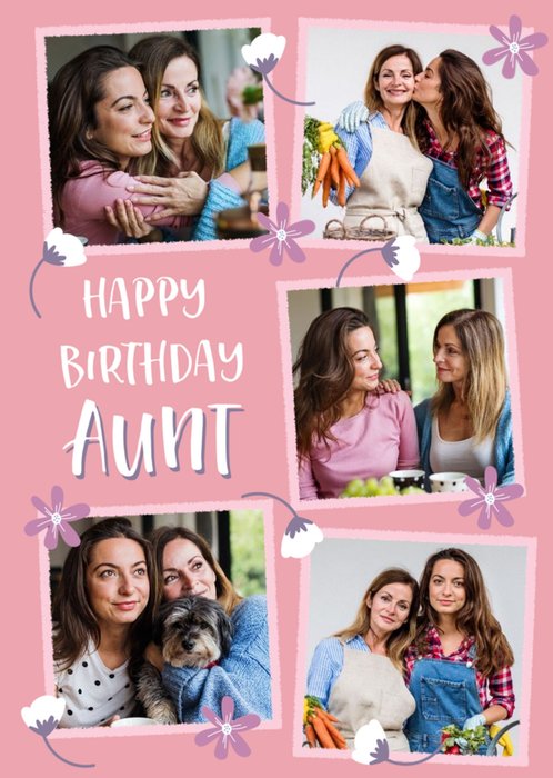 Folk Flowers Photo Upload Happy Birthday Aunt Card