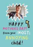 Features a photo upload area at the top of the card, with a white, jagged frame against a light blue coloured background. Underneath the photo is text in a hand written style font in a mix of black, pink, white and yellow with an arrow pointing from the text to the photo.