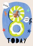 The card features a giant 8 with a photo upload area in the top part of the 8. There are speech bubbles coming off of the 8.