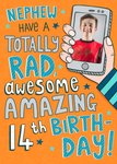 Fun Bright Illustration Smart Phone Nephew Totally Rad Nephew 14th Birthday Photo Upload Card