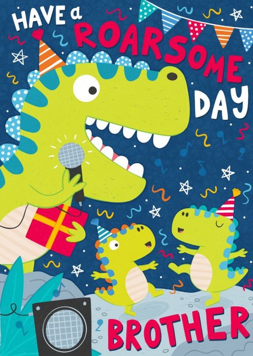 Fun Illustration Design Dinosaur Party Balloons Have A Roarsome Day Birthday Card