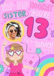 Fun Illustration Hip Hip Hooray Sister Youre 13 Today Birthday Card