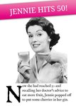 Funny 50th Birthday Card - Jennie hits 50! Now she had reached 50 and recalling her doctor's advice to eat more fruit. Jennie popped off to put some cherries in her gin.