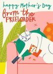 Funny Illustrated Freeloader Cat Mother's Day Card