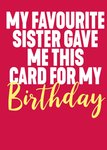 Funny Typographic My Favourite Sister Gave Me This Card For My Birthday
