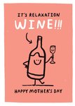 Featuring a cheerful cartoon wine bottle holding a wine glass, with a smiling face and simple hand-drawn style, on a peach coloured background.