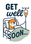 Cartoon illustration of an orange otter resting in a hospital bed with an IV drip attached, smiling peacefully under a blanket. Large bold text appears above and below the illustration.