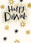 Gold and black coloured stars and gold coloured spots surrounding large handwritten text.
