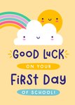A colourful design featuring a smiling sun and cloud next to a rainbow. The design has hand-drawn text underneath and sits on a cheerful yellow background.