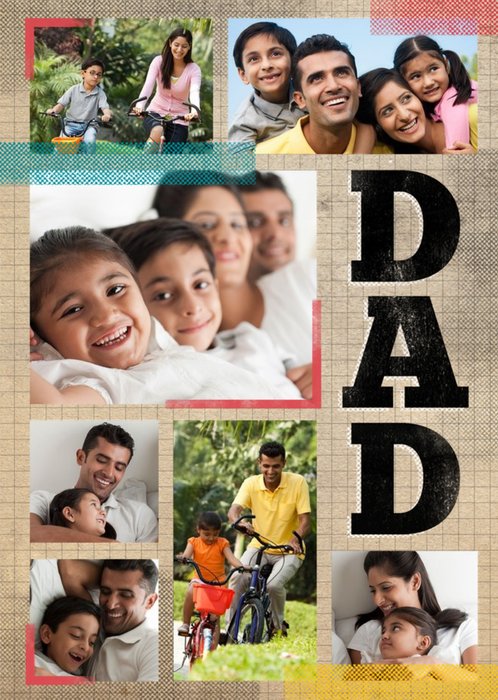 Grid Background & Block Letters Father's Day Multi-Photo Card