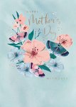A pretty and sentimental Mother's Day card featuring a handpainted, watercolour illustration of two butterflies flying amongst some pretty flowers. The main text is in a gold, handwritten script.