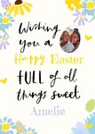 "Wishing you a happy Easter full of things sweet Amelia". 'Amelia' can be personalised!