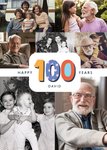 A modern, sentimental design featuring a centralised 100th Birthday message with an editable name, on a white background surrounded by seven photo upload frames.