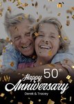 Happy Anniversary Gold Confetti Photo Upload Card