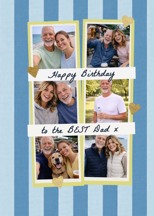 Happy Birthday Best Dad Striped Photo Collage Card