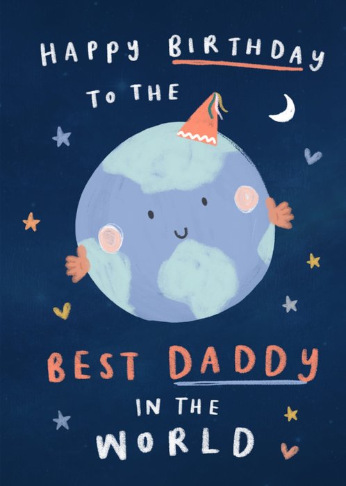 Happy Birthday Best Daddy In The World Cute Illustrated Planet Earth Card