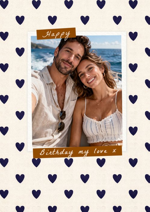 Happy Birthday My Love Heart Pattern Photo Upload Card