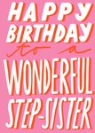 Happy Birthday To A Wonderful Stepsister Typographic Pink Card
