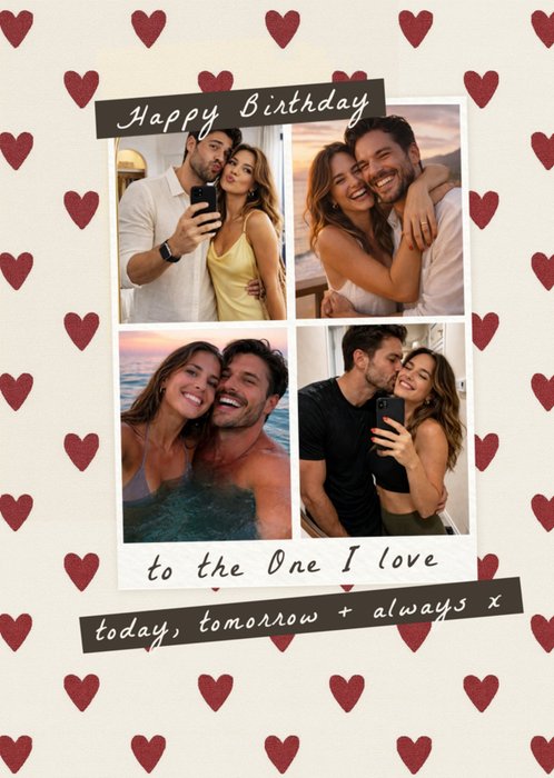 Happy Birthday To The One I Love Heart Pattern Photo Collage Card