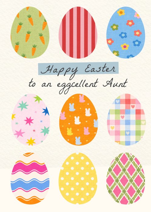 Happy Easter To An Eggcellent Aunt Illustrated Easter Card