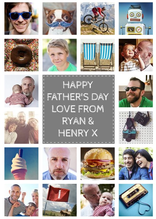 Happy Father's Day Twenty Photo Card with Grey Text Box