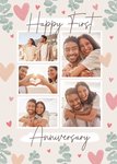 • Happy 1st Anniversary Love Heart Photo Upload Card