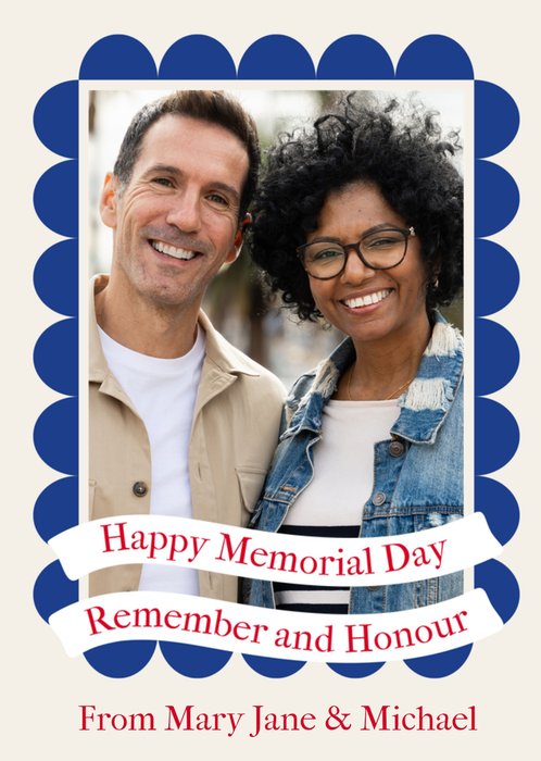 "Happy Memorial Day remember and honour From Mary Jane & Michael". 'From Mary Jane & Michael' can be personalised!