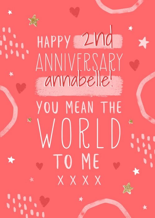 Happy Second Anniversary You Mean The World To Me Anniversary Card