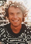 Featuring hand-drawn hearts, stars, and doodles surrounding a central photo upload area.