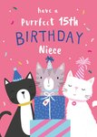 "Have a purrfect 15th birthday niece". '15th' and 'niece' can be personalised!