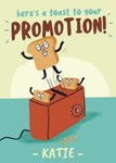 "Here's a toast to your promotion". '- Katie -' can be personalised!
