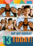 "Hip hip hooray, 13 today!" "Hip hip hooray" is editable.